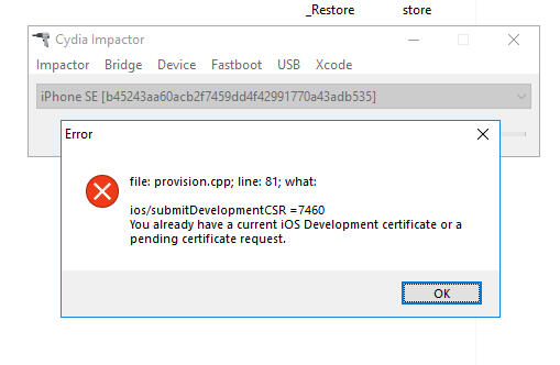 Problem is i have absolutely no idea how! Ios/submitdevelopmentcsr =7460 you already have a current ios development certificate or a pending certificate request. “ provision.cpp:71 ios/submit/developmentcsr = 7460 you already have a current ios development certificate or a pending certificate request.” hướng dẫn khắc phục lỗi provision.cpp:71 and provision.cpp:81 khi sử dụng cydia impactor phương pháp 1:.