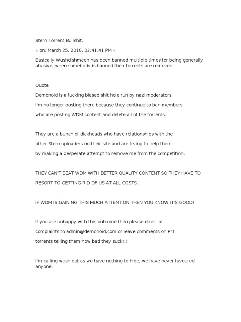 High pitch conducts a daily blog documenting his life and reviewing the howard stern show.daily shows air live at 10:30 am est monday through friday. Currently there are over 4300 active torrents and over 13000 users on this tracker. By far, the main source for them is a site called wushdishmean (wdm).